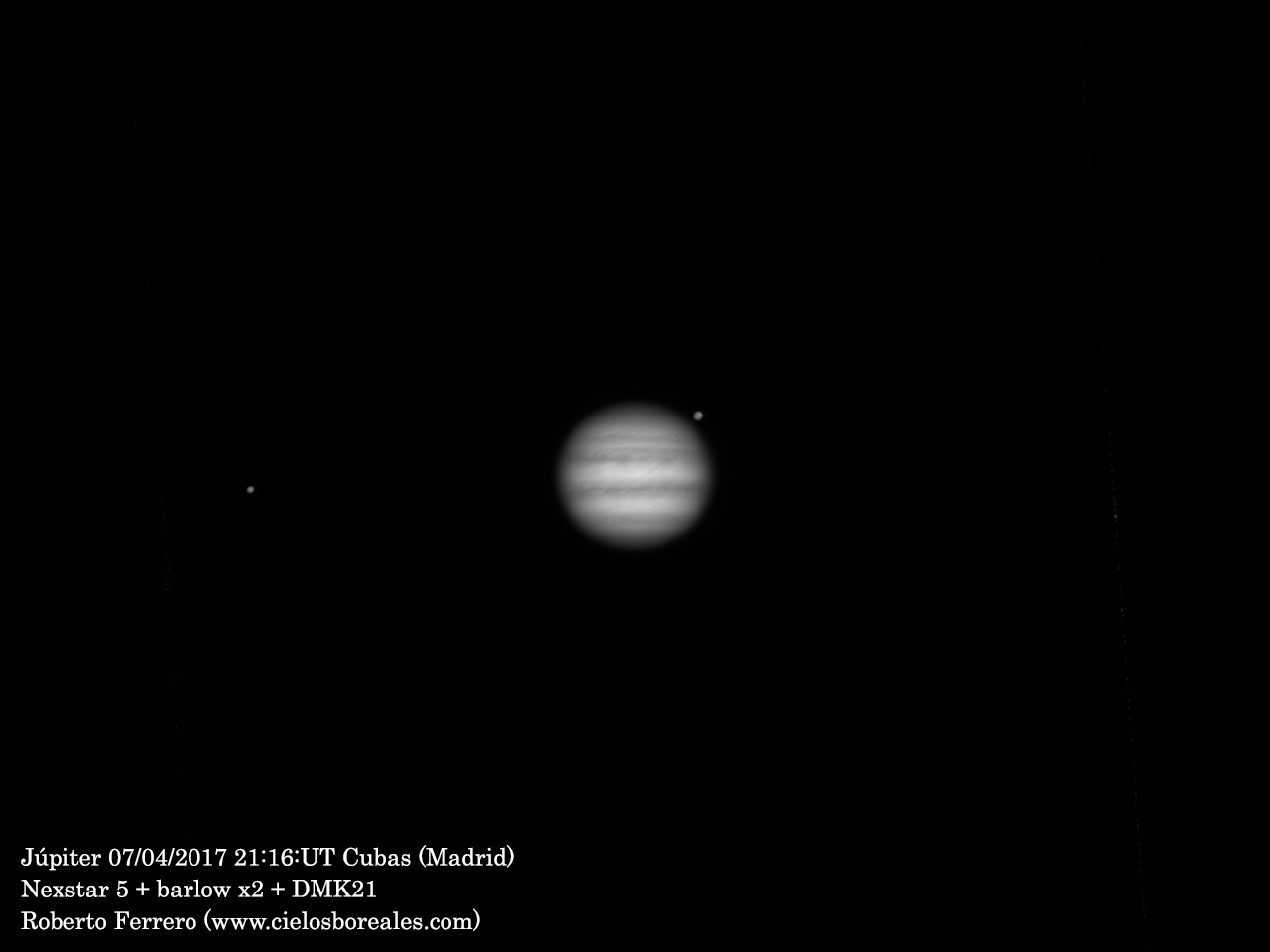 Júpiter en oposición junto a sus lunas Ganímedes e Ío.