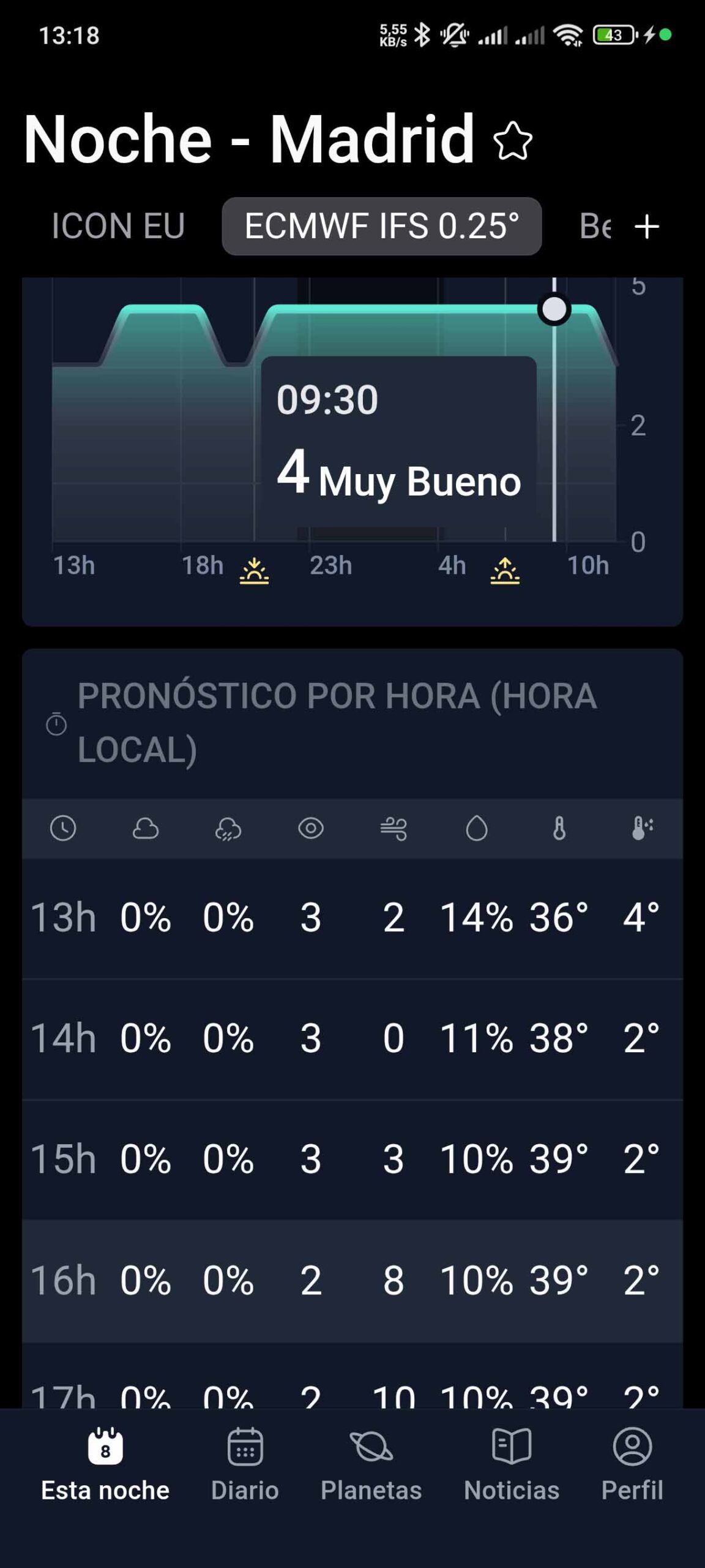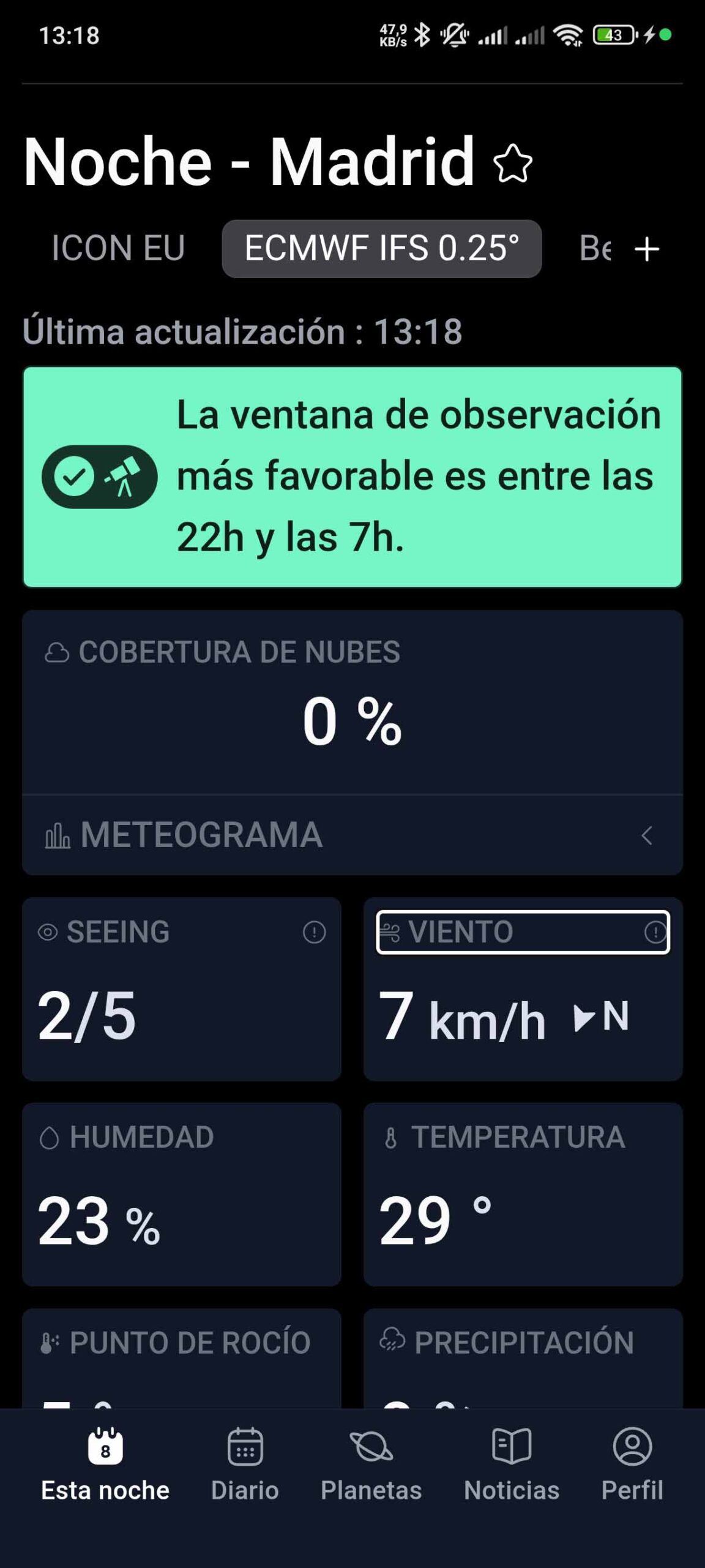 He tenido la oportunidad de ir probando esta app desde hace varias semanas y la verdad es que suele ser bastante precisa y acierta la mayoría de las veces. Me gusta principalmente de ella que es muy sencilla de usar y la información se muestra muy clara así que os la recomiendo para planificar vuestras observaciones astronómicas.