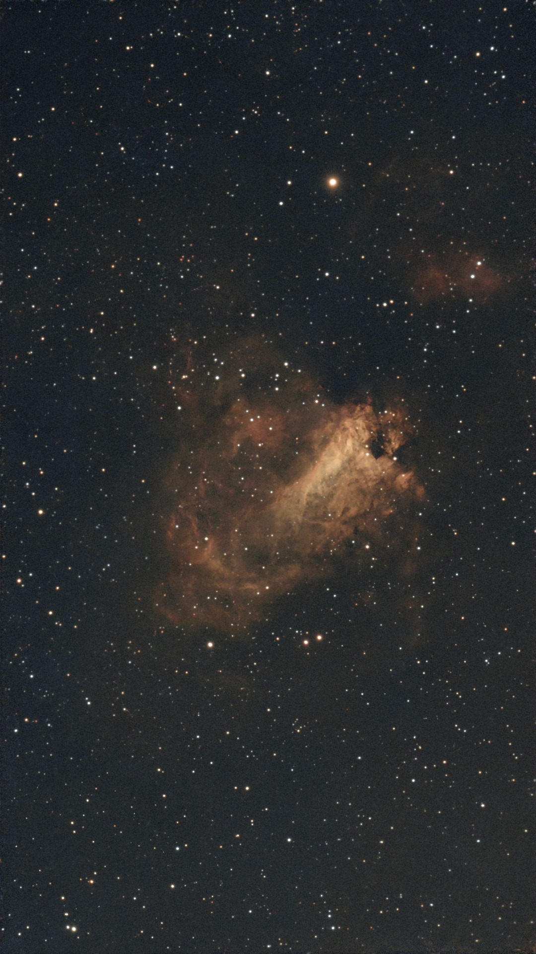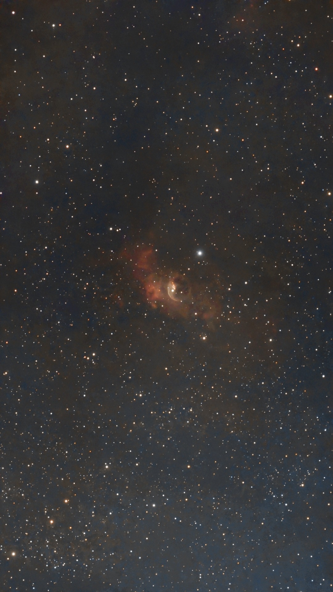 Tras unos minutos en los que las imágenes se van apilando automáticamente por la app empezamos a ver cómo aparece la nebulosa. Las estrellas se ven redondas aunque poco puntuales, la óptica y resolución del equipo no dan para más y tienden a «engordar» un poco a medida que vamos apilando. Estamos ante una óptica consistente en un triplete apocromático de 50mm de apertura y 250mm de focal, es decir, un f/5 una relación perfecta para astrofotografía. La cámara cuenta con un sensor Sony IMX462 de 1920×1080 px con un tamaño de pixel de 2.9um.